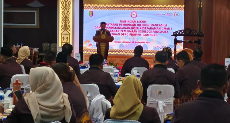 Ketua BPIP Yudian Wahyudi Apresiasi Kebijakan DPRD Provinsi Lampung Tidak Gunakan Hotel Uncategorized|September 18, 2025October 2, 2025by Novis Pawarman Lampung,Sumberpintar.com–DPRD Provinsi Lampung bersama Badan Pembinaan Ideologi Pancasila (BPIP) menggelar Bimbingan Teknis