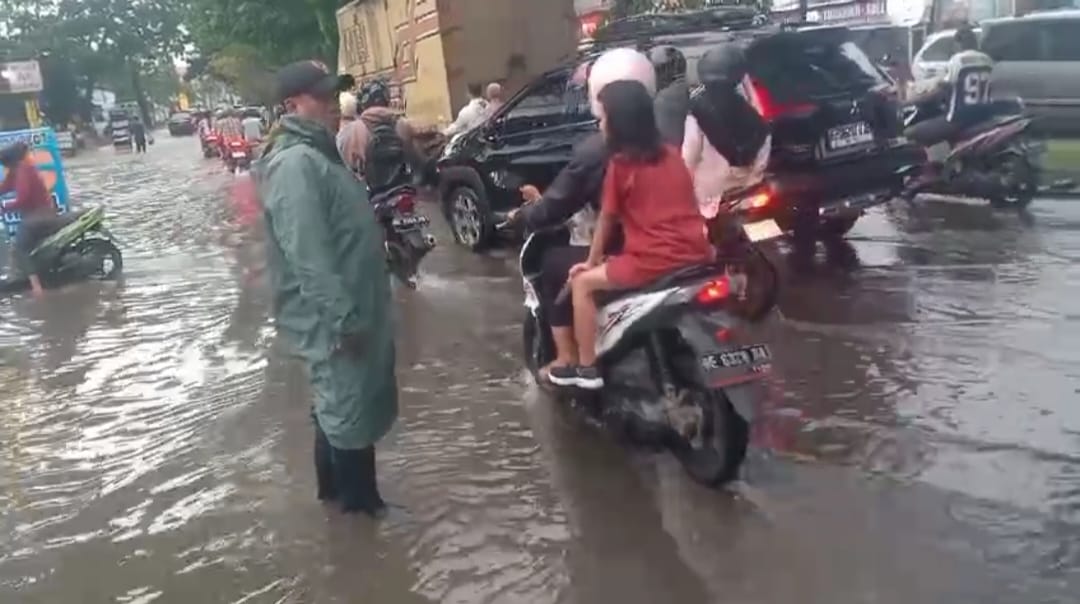 1. Jalan Sultan Agung: Ruas jalan utama ini tergenang air yang cukup tinggi, menyebabkan kemacetan arus lalu lintas di kawasan tersebut.