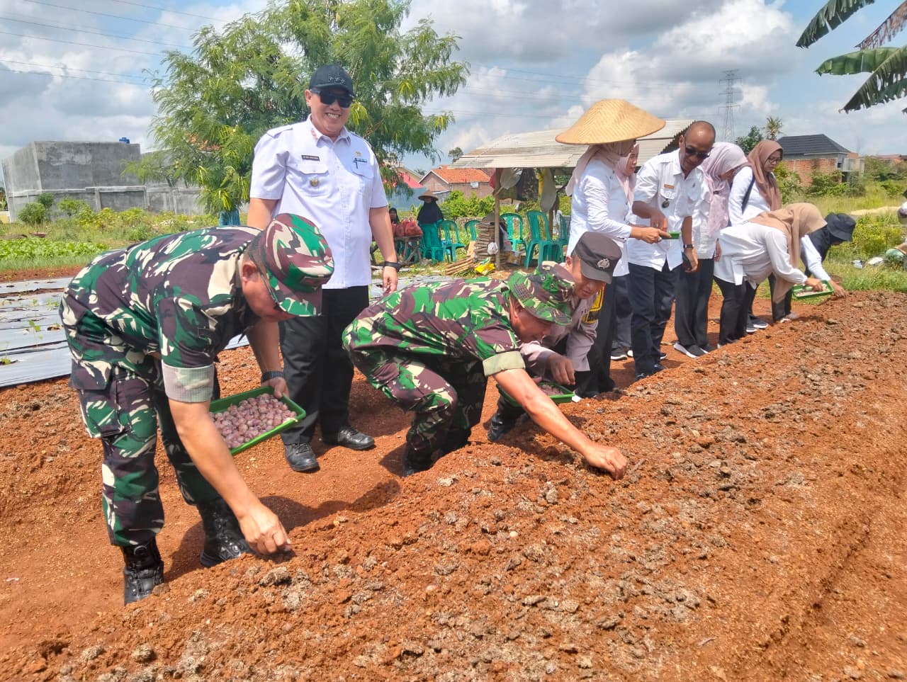 Danramil 410-04/TKT, Mayor Kav. Joko Subroto, bersama Serma Agus R. selaku Babinsa Kelurahan Way Kandis, memimpin dan menggerakkan aksi penanaman bawang merah dan cabe, Rabu (15/10/2025) di lahan Kelompok Wanita Tani (KWT) Indah Lestari.