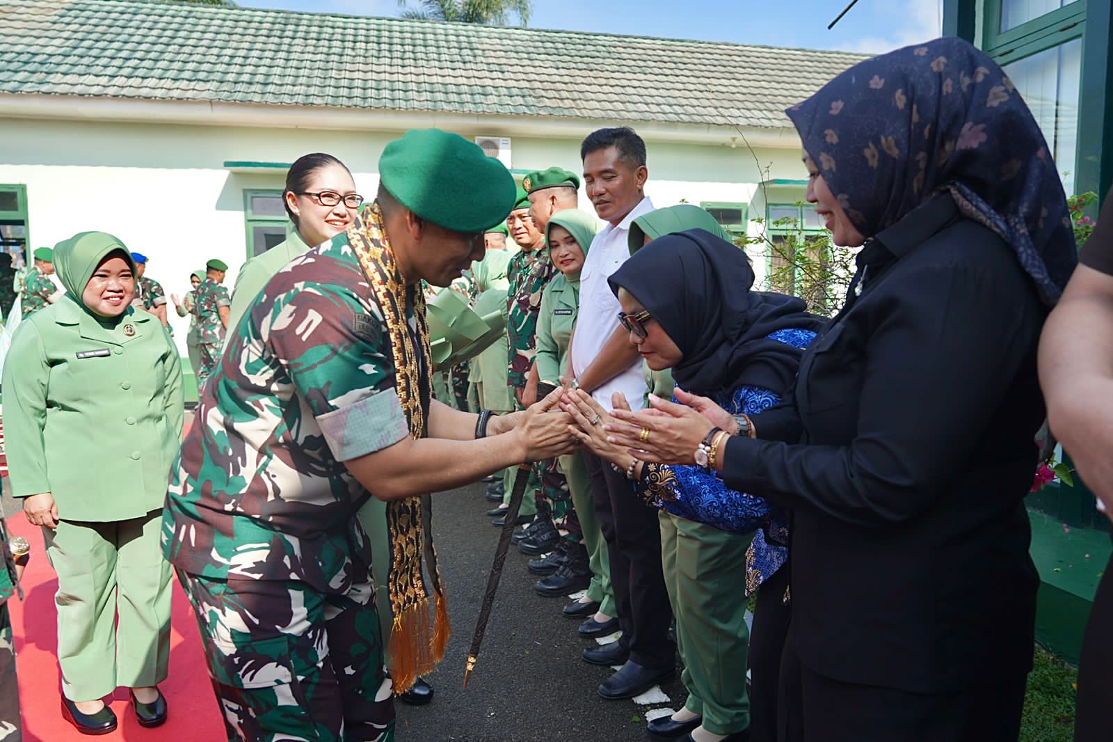 Danrem 043/Gatam hadir didampingi Ketua Persit KCK Koorcab Rem 043 PD XXI/Radin Inten, Ny. Bebi Sumarlin. Kedatangan rombongan disambut jajaran Forkopimda Kabupaten Lampung Timur, termasuk Bupati, Dandim 0429/Lamtim, Ketua DPRD, unsur TNI-Polri, serta para pejabat terkait lainnya.