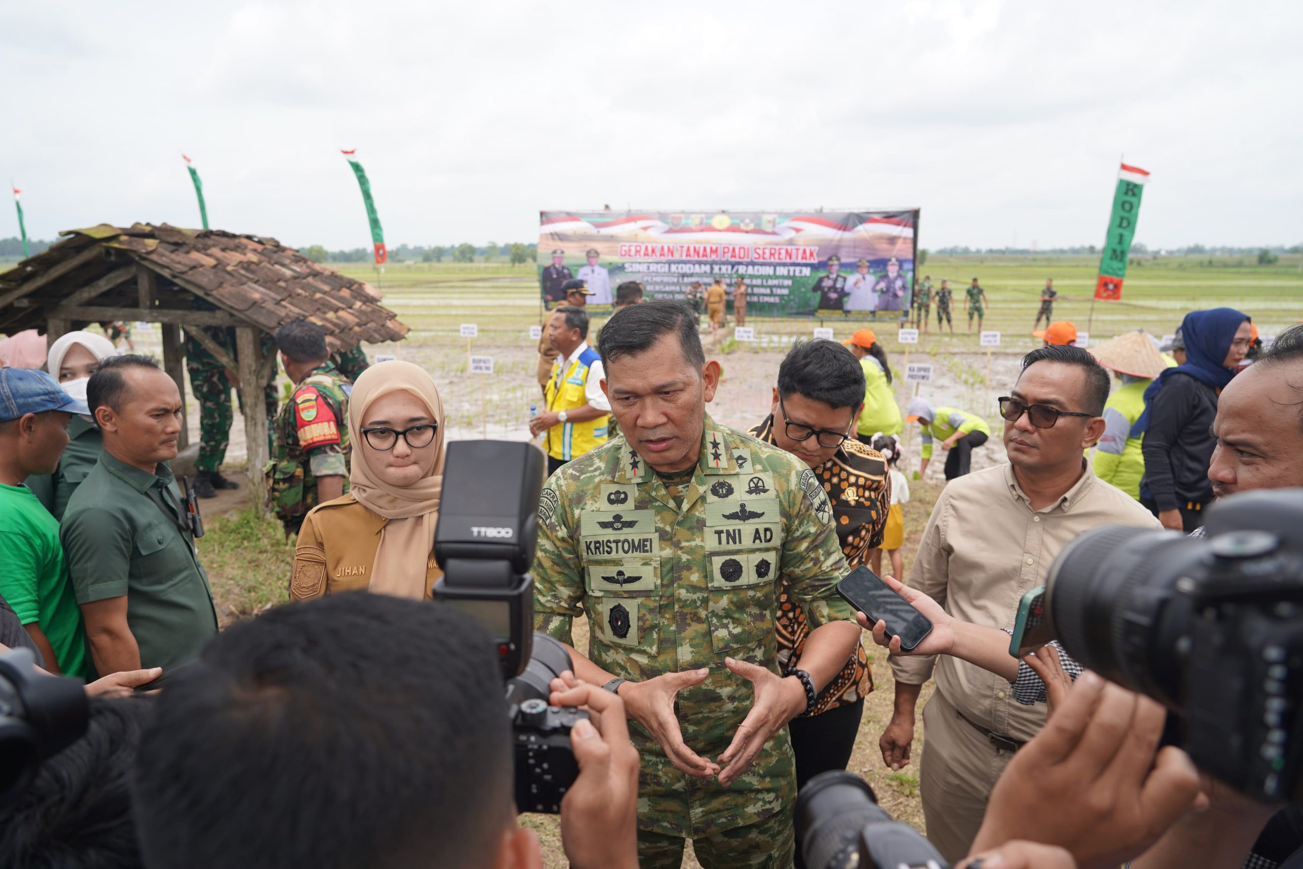 Sementara itu, Pangdam XXI/Radin Inten, Mayjen TNI Kristomei Sianturi, S.Sos.,M.Si., (Han), menegaskan bahwa gerakan tanam padi serentak ini sejalan dengan kebijakan Presiden Prabowo Subianto yang menempatkan ketahanan pangan sebagai fondasi kedaulatan bangsa.