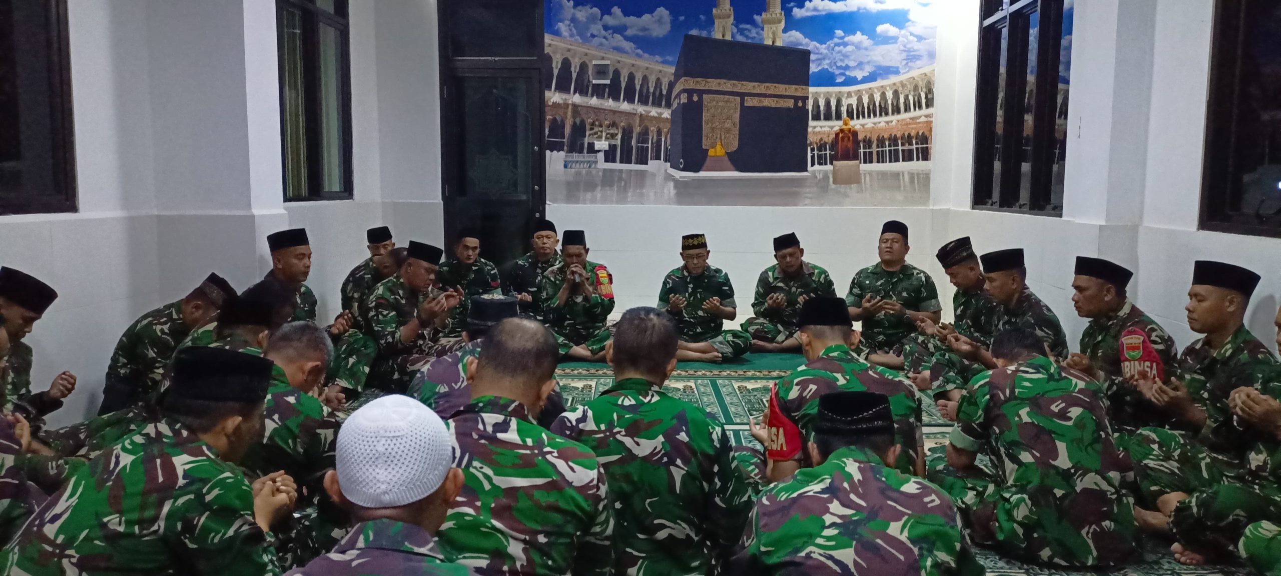 BandarLampung, Sumberpintar.com– Anggota Babinsa dari seluruh Koramil yang berada di bawah naungan Kodim 0410/KBL bersama jajaran Makodim mengikuti kegiatan doa bersama dalam rangkaian kegiatan Radin Inten, bertempat di Musholla Kodim 0410/KBL Jalan Imam Bonjol, Kelurahan Gunung Agung, Kecamatan Langkapura, Kota Bandar Lampung, pada hari Rabu (31/12/2025) pukul 17.30 WIB.