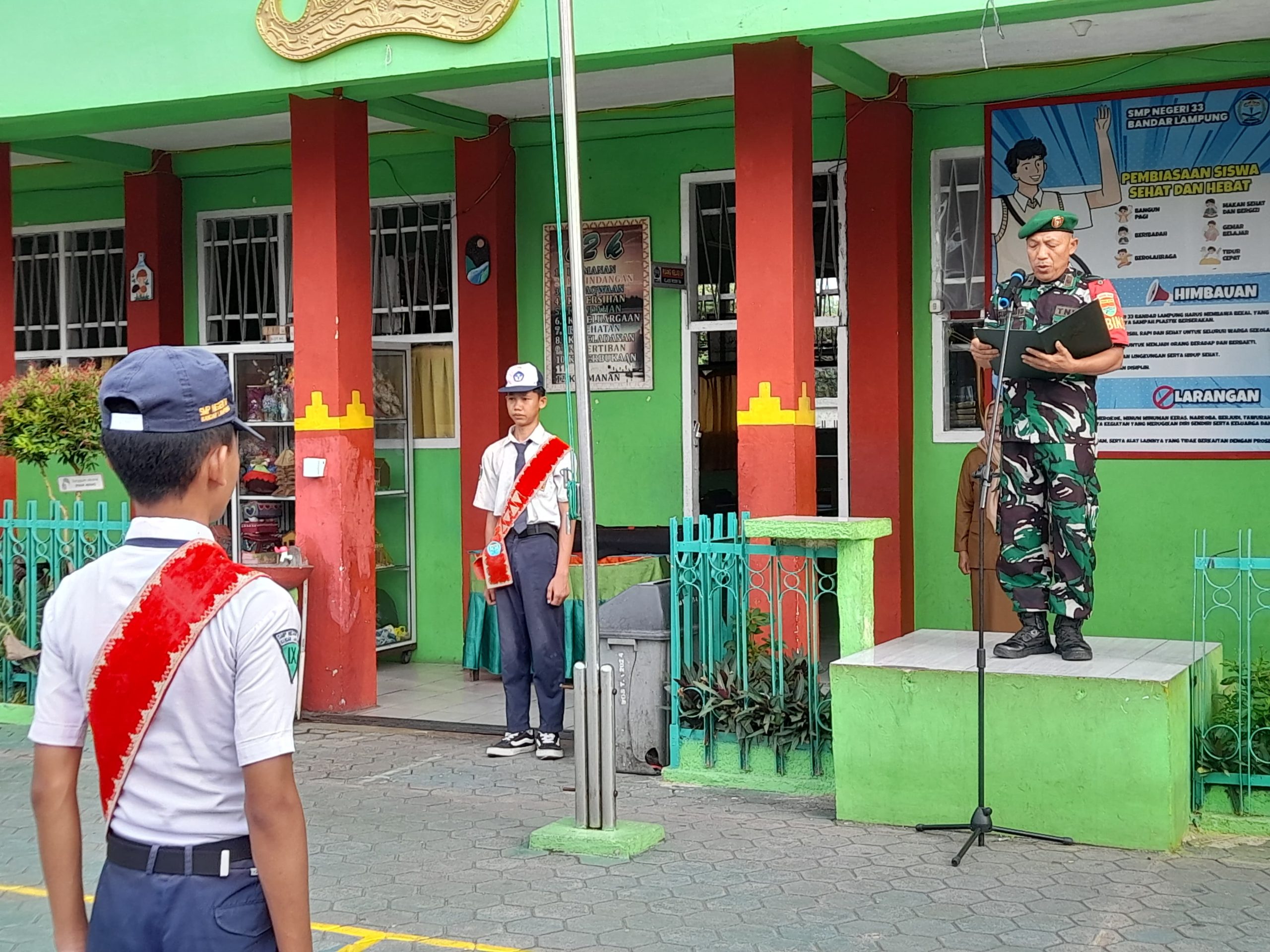 Kegiatan ini berlangsung pada hari Senin, 3 November 2025, pukul 07.00 WIB di SMPN 33 Bandar Lampung, Jalan H. Nurdin Muhayat No. 26, Kelurahan Enggal, Kecamatan Enggal.