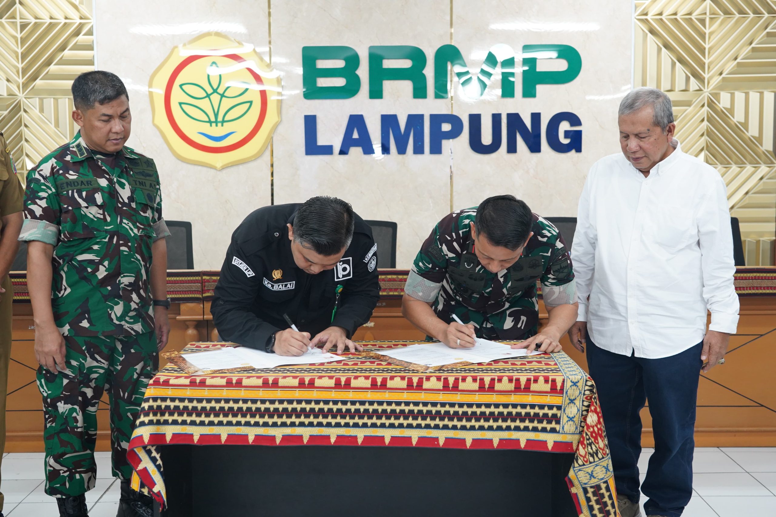 Komitmen tersebut disampaikan Komandan Korem 043/Gatam Brigjen TNI Sumarlin Marzuki saat menghadiri penandatanganan kontrak CSR di Balai Perakitan dan Modernisasi Pertanian (BRMP) Lampung, Jalan ZA Pagar Alam, Rajabasa, Selasa (28/04/2026).