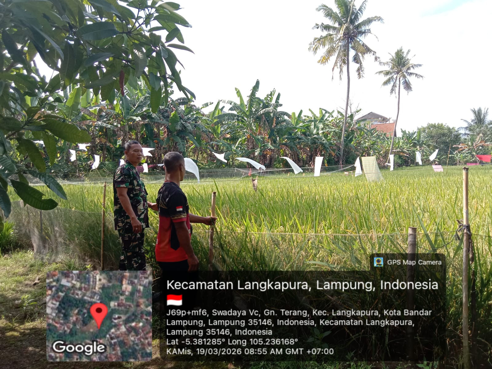 Sumberpintar.com Dalam rangka mendukung program swasembada pangan nasional serta mewujudkan ketahanan pangan di wilayah binaan, Babinsa Kelurahan Gunung Terang, Serda Candrawasih dari Koramil 410-05/TKP, melaksanakan kegiatan pemantauan perkembangan tanaman padi di lahan persawahan milik warga, Kamis (19/03/2026).
