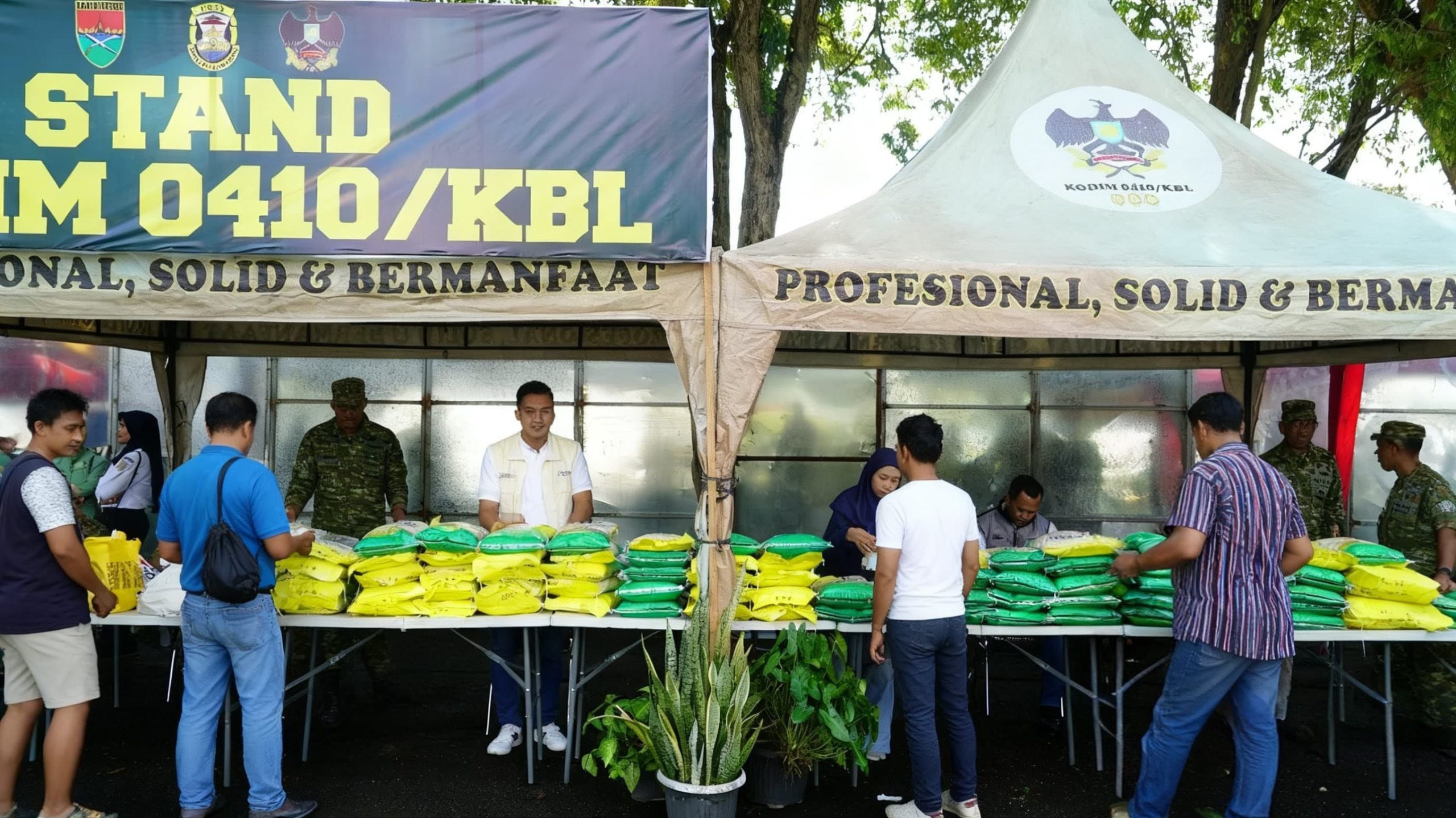 “Ayo ibu-ibu, bapak-bapak, jangan sampai kelewatan! Stand Kodim 0410/KBL paling lengkap, paling murah, dan paling berkualitas!