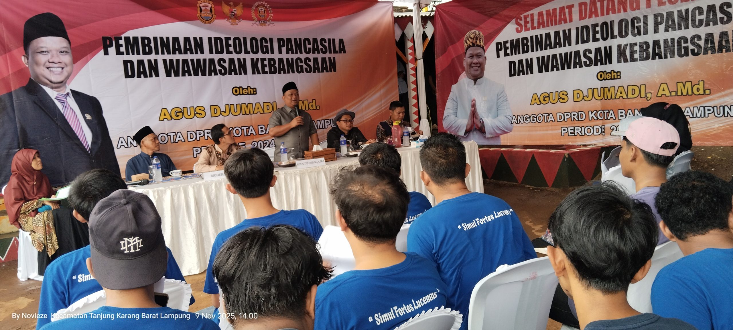 BandarLampung, Sumberpintar.com– Anggota DPRD Kota Bandar Lampung, Komisi III dari Fraksi Partai Keadilan Sejahtera (PKS), Agus Djumadi, menggelar kegiatan Pembinaan Ideologi Pancasila dan Wawasan Kebangsaan (PIP-WK) di Kelurahan Gunung Terang, Kecamatan Langkapura, Kota Bandar Lampung, Minggu (09/11/2025).