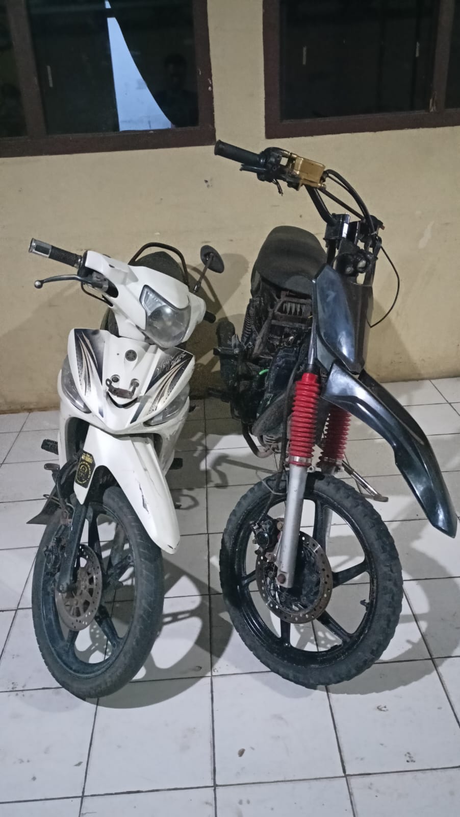Polisi menemukan motor hasil curian yang disembunyikan di semak-semak kebun, sekitar 150 meter dari lokasi.