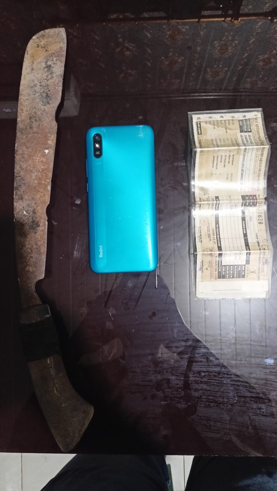 Tidak berhenti di situ, pelaku kemudian melanjutkan aksinya ke rumah warga lain. Dengan cara merusak lubang angin di atas pintu menggunakan sebilah golok, pelaku masuk ke rumah dan mematikan seluruh lampu. Ia lalu mengambil sebuah handphone Redmi Note 9 warna biru yang berada di kamar, tepat di samping istri korban yang tengah tidur.